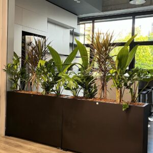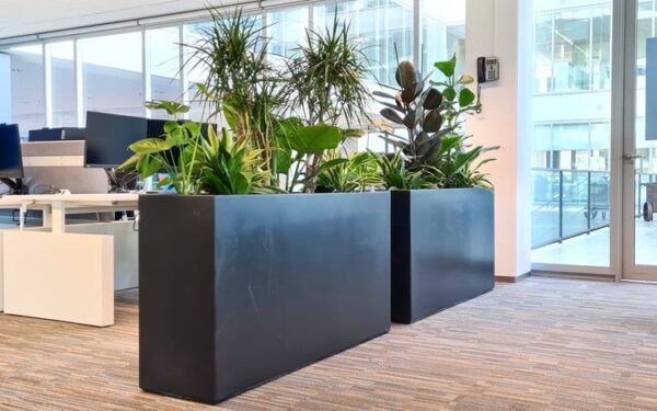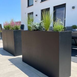 Modern dikdörtgen formuyla öne çıkan dikdörtgen saksı, bitkilerinizi şık ve düzenli bir şekilde sergiler.
